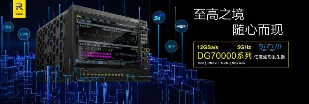 DG70000系列是业内领先的具有最高12Gsa/s采样率、5GHz模拟带宽、16bit垂直分辨率、最长4Gpts波表长度的高性能任意波形发生器,拥有-70dBc无杂散动态范围,为用户提供更清晰、更纯净的信号。支持创建高达16384条高级序列,可定义各种复杂波形信号。可级联扩展至224个通道,且通道间延迟低至10ps。可以直接合成高达5GHz的射频信号,实时调制带宽高达1.5GHz。支持快速调频,跳频间隔低至128ns。采用RIGOL SiFiIII波形合成技术,逐点生成任意波形,不失真还原信号,随机抖动低至350fs。