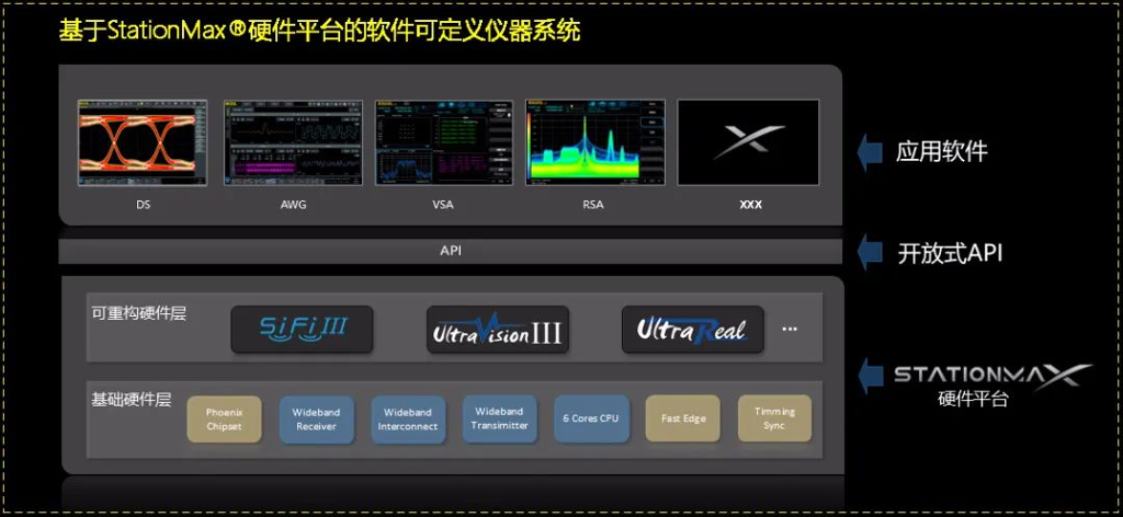 全新StationMax®平台,是一种以数据采集分析系统和任意信号合成为基础的软件可定义测量仪器平台,此平台应用全新的基于全触控体验的UI设计,搭载6核64位“服务器级”处理器,具有2T MAC 实时DSP运算能力,内部互连带宽440Gbps。数字硬件可重构,可支持RIGOL的UltraVision III、SiFi III、UltraReal等多个技术平台。