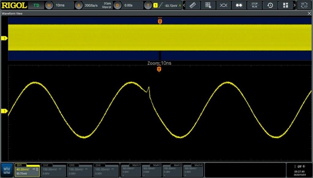 DS80000系列拥有每通道4Gpts超长存储深度,提供高保真的信号细节采集能力,让采集的波形更加接近于信号最真实的信息。